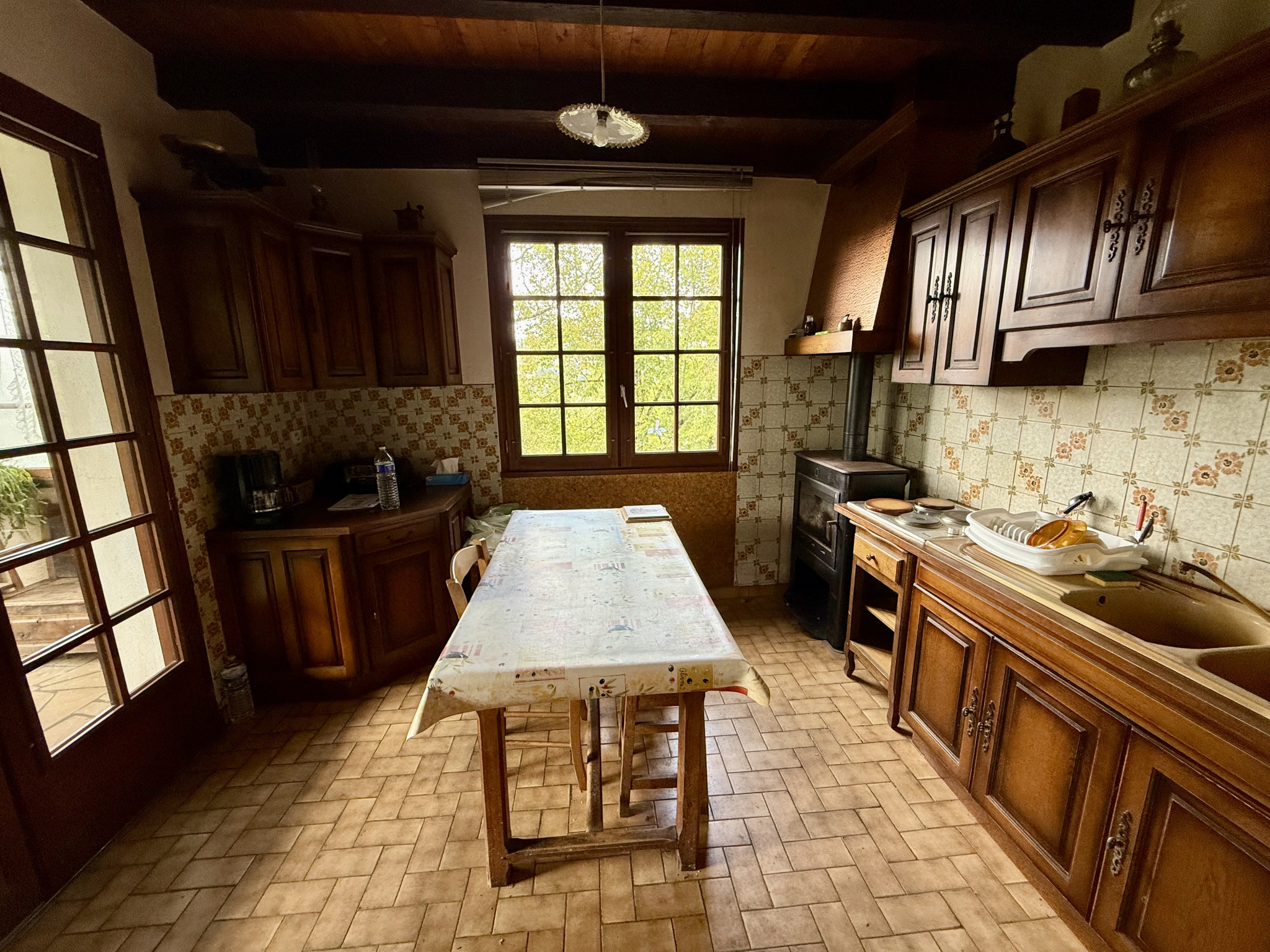 En Exclusivité dans notre agence - Idéal pour les amoureux du calme et de la nature !!! Venez découvrir ce pavillon implanté sur un terrain de 4500m². Le pavillon construit dans les années 80 développe environ 97m² habitables sur deux niveaux. Il dispose d'un garage en sous-sol et d'un garage indépendant. Actuellement, le bien est uniquement alimenté par l'eau de source...le propriétaire a fait les travaux necessaire pour que le futur acquéreur puisse ajouter un compteur d'eau. La maison dispose en rez de jardin d'un garage, une cave, un wc, une salle d'eau, une buanderie/cuisine d'été, une grande chambre. L'étage se compose d'une véranda avec jolie vue, une cuisine indépendante, un séjour avec cheminée, deux chambres, une salle de bain, un wc. Une trappe donne accès aux combles permettant de stocker... Au niveau chauffage la maison possède des radiateurs électriques, un poele à bois dans la cuisine et une cheminée dans le séjour. L'assainissement est non conforme.