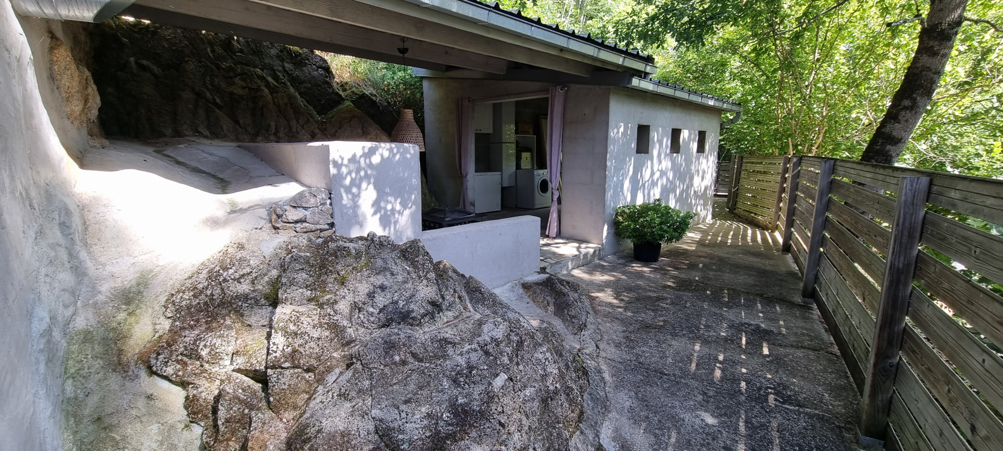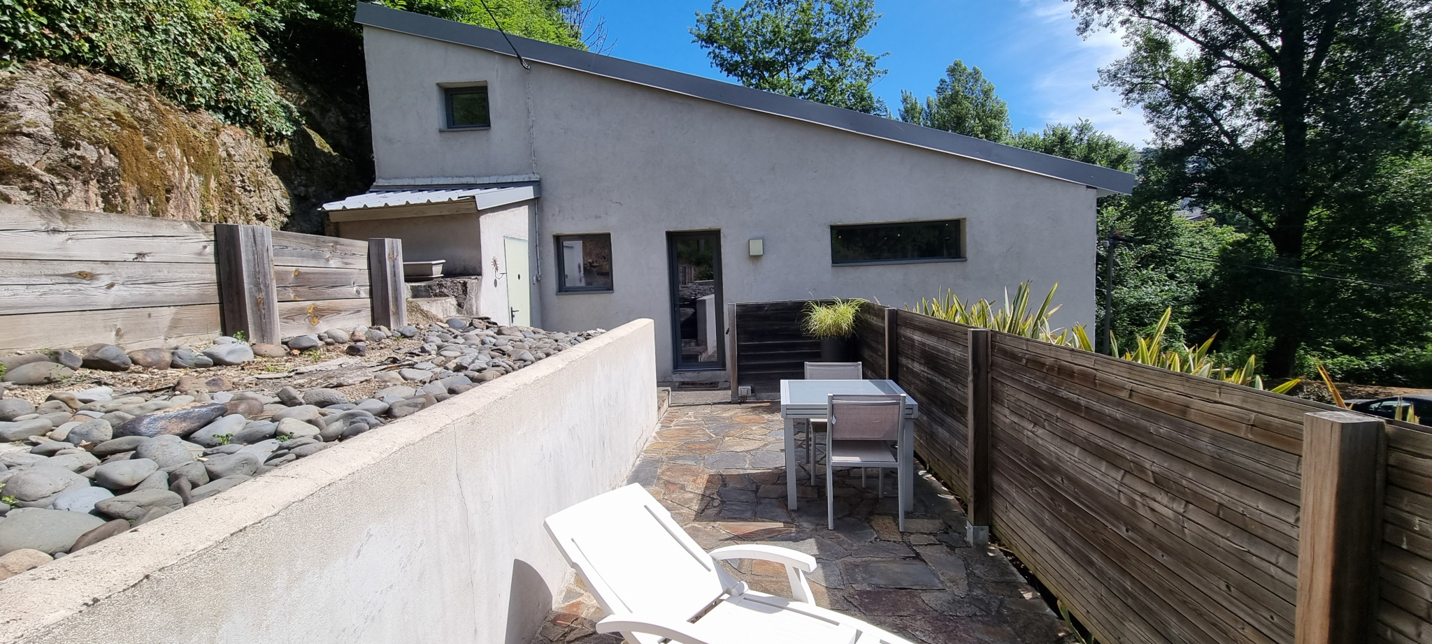 Sur le fil du Lot, Maison atypique avec dépendance, terrasses et jardin non attenant au bord de la rivière. Elle se compose d'un appartement de type 3 en trés bon état en rez de chaussée, composé d'une cuisine équipée, salle à manger, 2 chambres et salle d'eau. Il est trés lumineux, fonctionnel et agréable à vivre. Il pourrait facilement être louéà la semaine? Au 1er étage se situe le logement principal, il se compose d'une cuisine ouverte sur trés grande pièce de vie et d'une salle d'eau. Cet étage accède aux 2 terrasses aménagées et a la dépendance de l'arrière bâtie a flanc de rocher, endroit trés agréable et plein de charme. En combles sont établies une grande chambre, salle de bains et dressing. L'ensemble est chauffé grâce à une pompe à chaleur et divers split répartis dans la maison. Sur l'arrière se trouve un garage accéssible de la route et en contrebas de la maison se situe un trés agréable terrain plat permettant de se garer facilement mais aussi donnant un acces à la rivière. Un bien atypique offrant à la fois du charme et de la modernité ... a découvrir !
