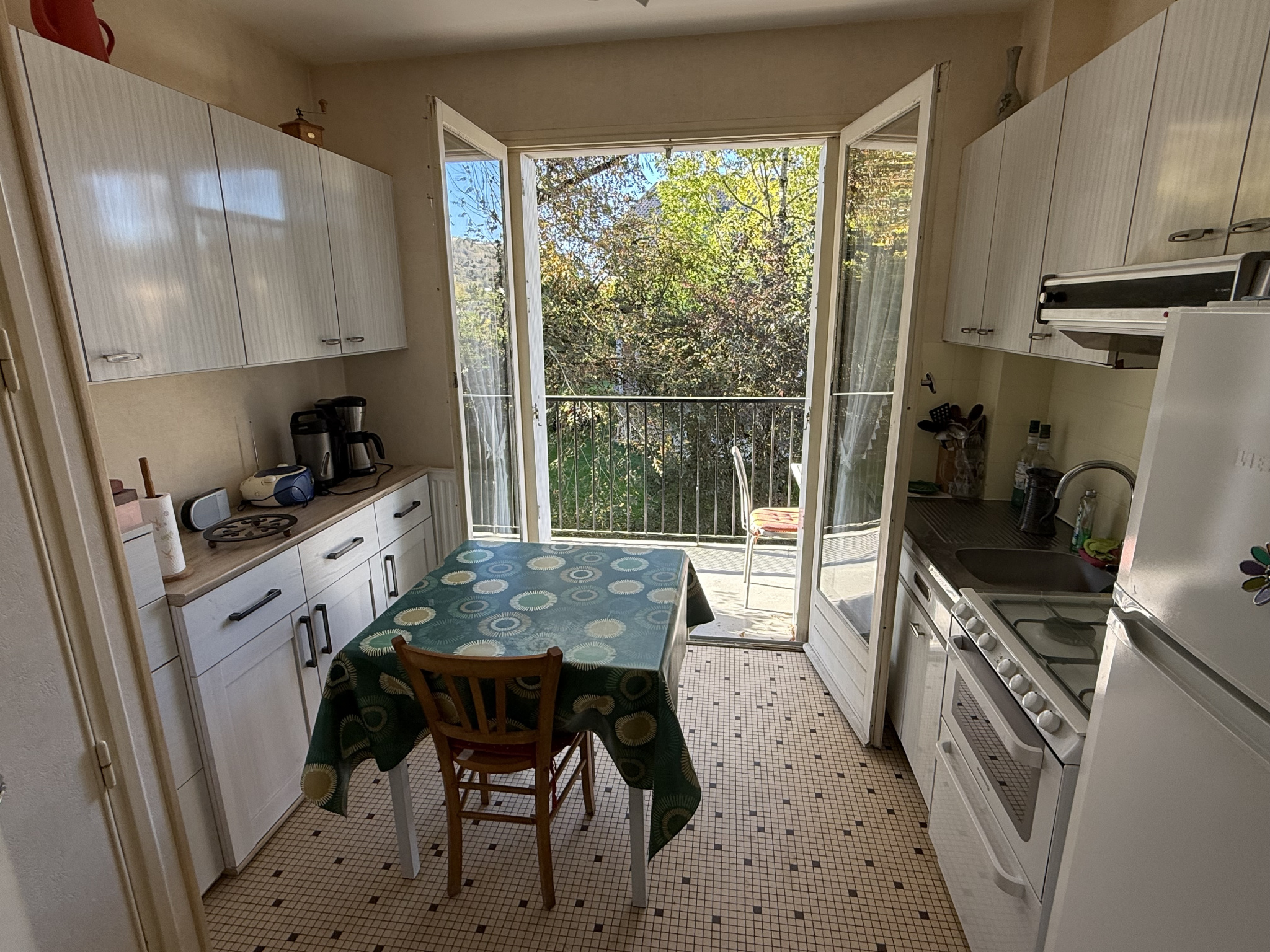 Appartement de type 2 situé au premier étage d'une résidence calme et bien entretenue. Le logement mesure 46,91m² et se compose d'un séjour, une cuisine indépendante, une salle d'eau rénovée, une chambre et un wc. La chambre, la cuisine et le séjour donnent sur la grande terrasse avec vue dégagée. Le bien demande quelques travaux au niveau de l'électricité et les menuiseries sont en survitrage. Le bien dispose d'une cave. Le bien est idéalement situé dans Espalion, dans une rue au calme tout en étant à deux pas des commodités... Les charges de copropriété sont de 450e par an.