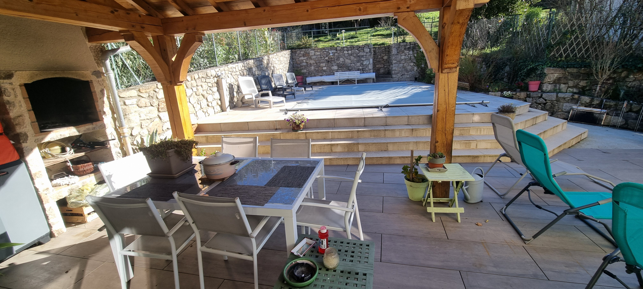 Au centre ville d'Entraygues, avec piscine et jardin ! Maison aux prestations de qualité, bâtie en 2008, sur un terrain total de 451 m². Elle se compose d'un vaste rez de chaussée avec garage, chaufferie, atelier buanderie, cave ... Une belle entrée avec rangement dessert le premier étage ou l'on retrouve la cuisine équipée avec cellier attenant et ouverte sur la grande piece de vie de 37 m² environ traversante et accédant à la terrasse et piscine, mais également 1 chambre, un bureau et la première salle de bains. Au second étage se trouvent pas moins de 5 chambres avec placards et la 2ème salle d'eau ! Charpente traditionnelle, trés belle couverture en ardoises et en lauzes. Chauffage central performant par chaudière a granulés bois associé à une trés bonne isolation. Beaux parquets, menuiseries bois .... Maison cossue trés lumineuse et fonctionnelle à 2 pas de toutes les commodités du village !