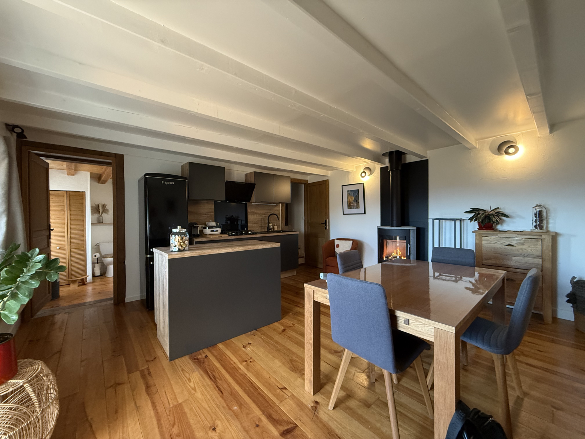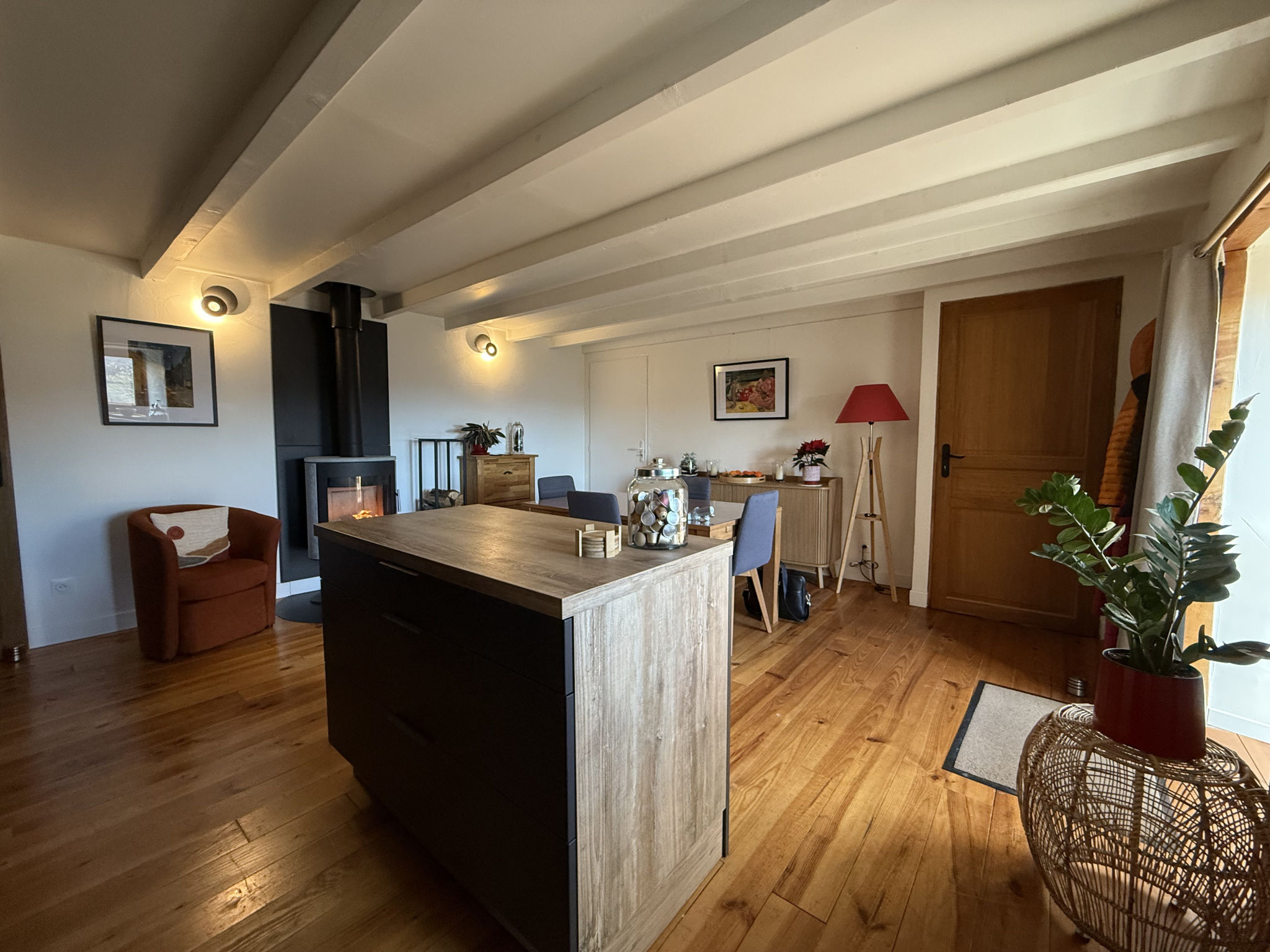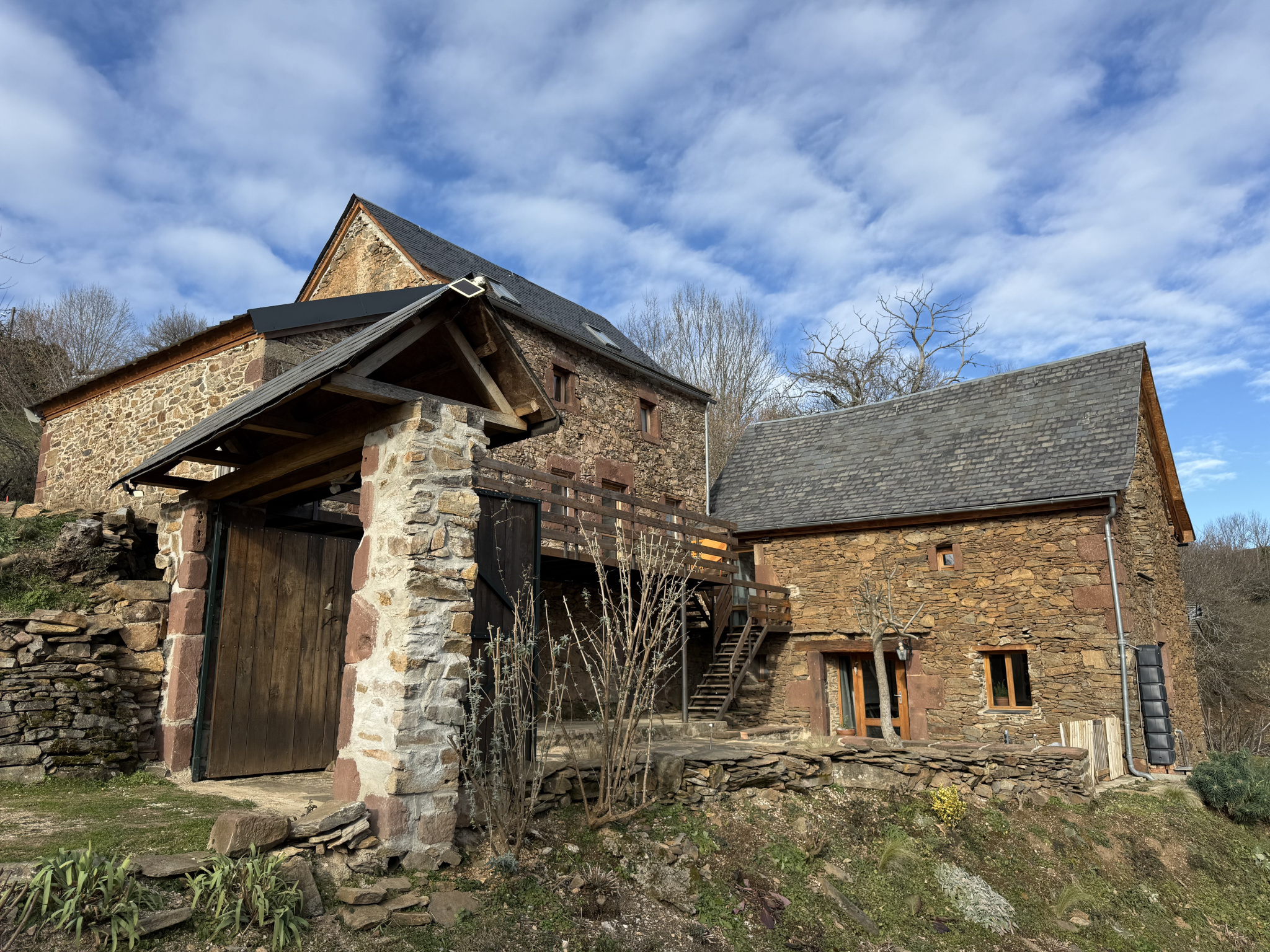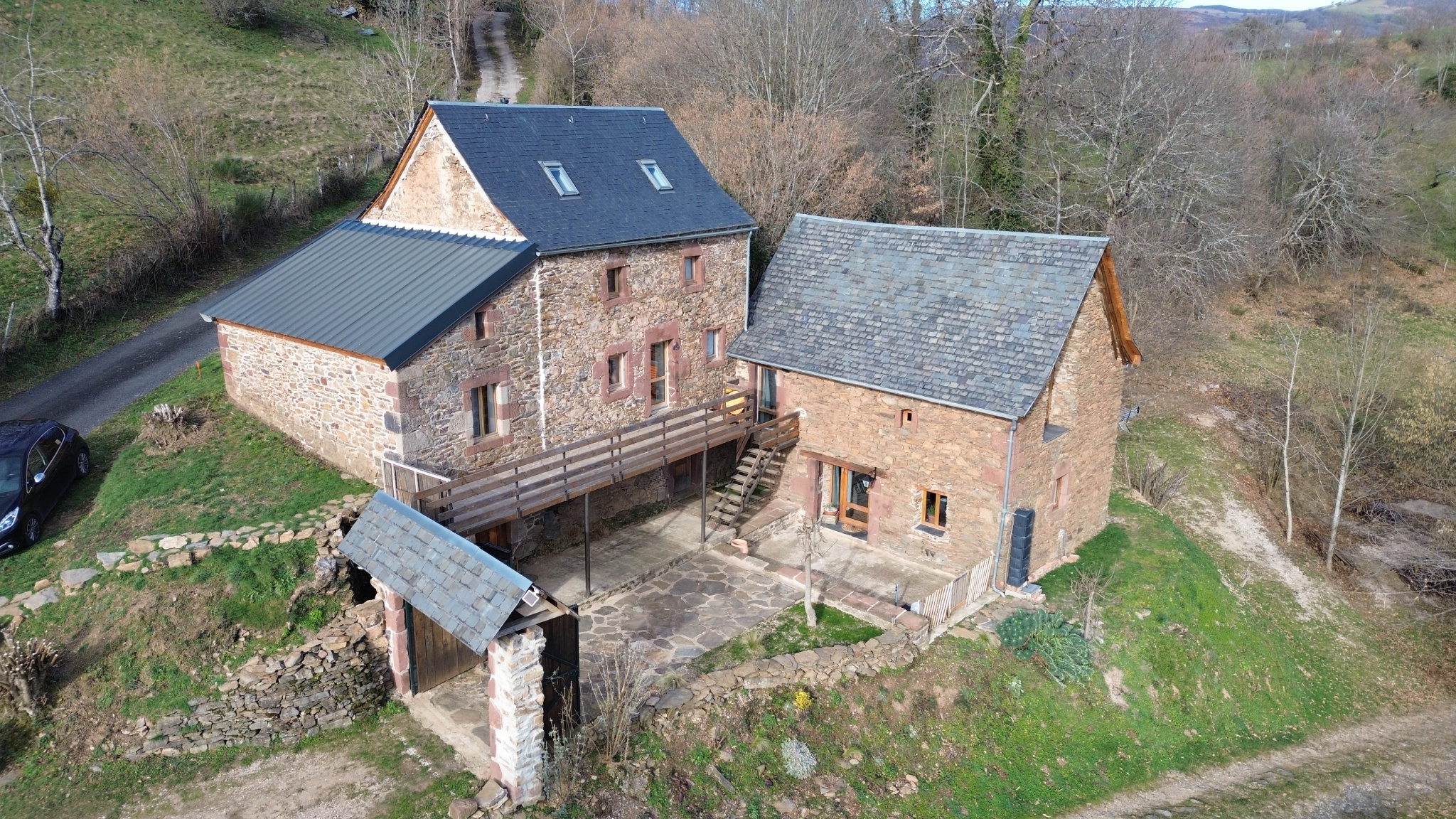 En exclusivité, dans un environnement naturel exceptionnel, sans aucun vis-à-vis, cet ensemble immobilier rare bénéficie d’une vue panoramique à 180° sur la campagne environnante. L’ensemble se compose de deux maisons soigneusement reprises et entretenues, offrant un équilibre réussi entre charme de l’ancien et confort actuel. Aucun travaux n’est à prévoir, l’ensemble est dans un état irréprochable. Idéal pour une résidence principale avec maison d’amis, un projet familial ou une activité d’accueil. Maison “L’Annexe” Cette maison séduit par son atmosphère chaleureuse et sa belle luminosité.L’entrée s’effectue directement dans une agréable pièce de vie avec plancher bois, poêle à bois tubé et cuisine pleine de charme. Une salle d’eau récente avec WC complète le niveau. À l’étage, une grande chambre avec plafond cathédrale et une ouverture remarquable offrent un volume très appréciable. Un dressing ainsi qu’une mezzanine permettent un couchage supplémentaire ou un espace polyvalent. Prestations : électricité reprise par un professionnel, double vitrage bois, radiateur électrique récent, ballon d’eau chaude électrique. Maison principale Bâtisse au charme authentique, dont les éléments essentiels ont été repris avec sérieux (toitures, isolation, électricité et chauffage), offrant aujourd’hui un confort optimal, sans travaux à prévoir. Le rez-de-chaussée accueille deux caves saines, avec isolation récente du plancher en laine de bois. Les murs et combles sont doublés. L’étage de vie, accessible par un escalier extérieur, s’ouvre sur une grande terrasse panoramique, véritable pièce de vie aux beaux jours.Il comprend une cuisine équipée récente ouverte sur le séjour avec poêle à bois gainé de qualité, une salle de douche récente, un salon cosy en demi-niveau, un coin lecture chaleureux ainsi qu’un espace cellier avec accès cave. Les niveaux supérieurs offrent une belle chambre avec rangements, un grand placard, puis une grande pièce sous combles disposant des arrivées et évacuations d’eau, idéale pour la création d’une future suite parentale. Prestations : radiateurs électriques récemment installés, toitures reprises, descentes d’eau neuves, fibre installée, fosse toutes eaux avec filtre coco, isolation intérieure performante, double vitrage bois. Extérieurs À l’arrière des deux maisons, une terrasse facilite la circulation entre les habitations et offre un réel potentiel pour créer un lien entre les deux espaces de vie. Le terrain, parfaitement entretenu, permet de se projeter aisément (jardin, espaces détente…). À l’avant, une grande terrasse en bois avec vue panoramique unique prolonge agréablement les maisons, complétée par un charmant porche d’entrée ainsi qu'une cour. Un ensemble immobilier rare, situé dans un cadre naturel privilégié, cohérent, soigné et prêt à être habité immédiatement.DPE en cours de renouvellement – amélioration notable de la note à prévoir. Taxe foncière 2024 494€ Un bien à visiter sans tarder !
